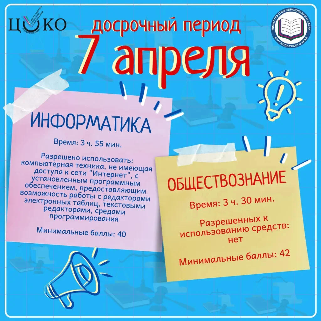 ⚡ Сегодня, 7 апреля, проводятся экзамены по информатике и обществознанию.