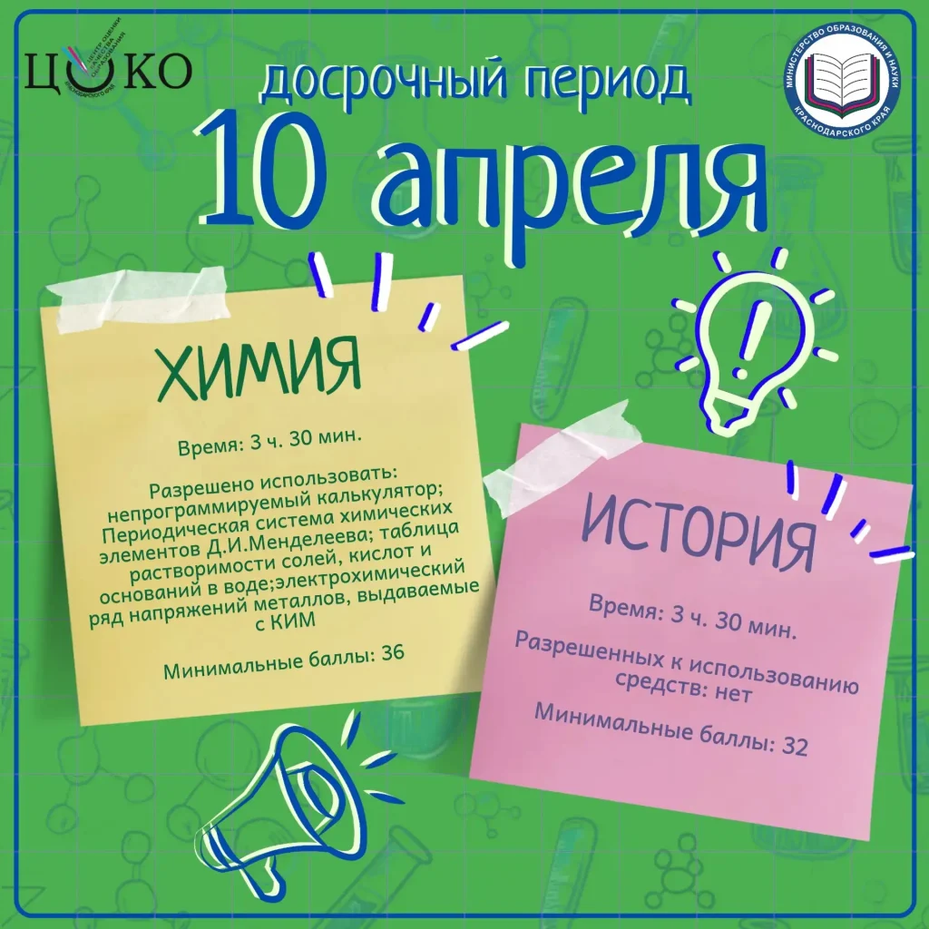 ⚡ Сегодня, 10 апреля, в рамках досрочного периода ЕГЭ, проводятся экзамены по истории и химии. В экзаменах участвуют 6 человек.