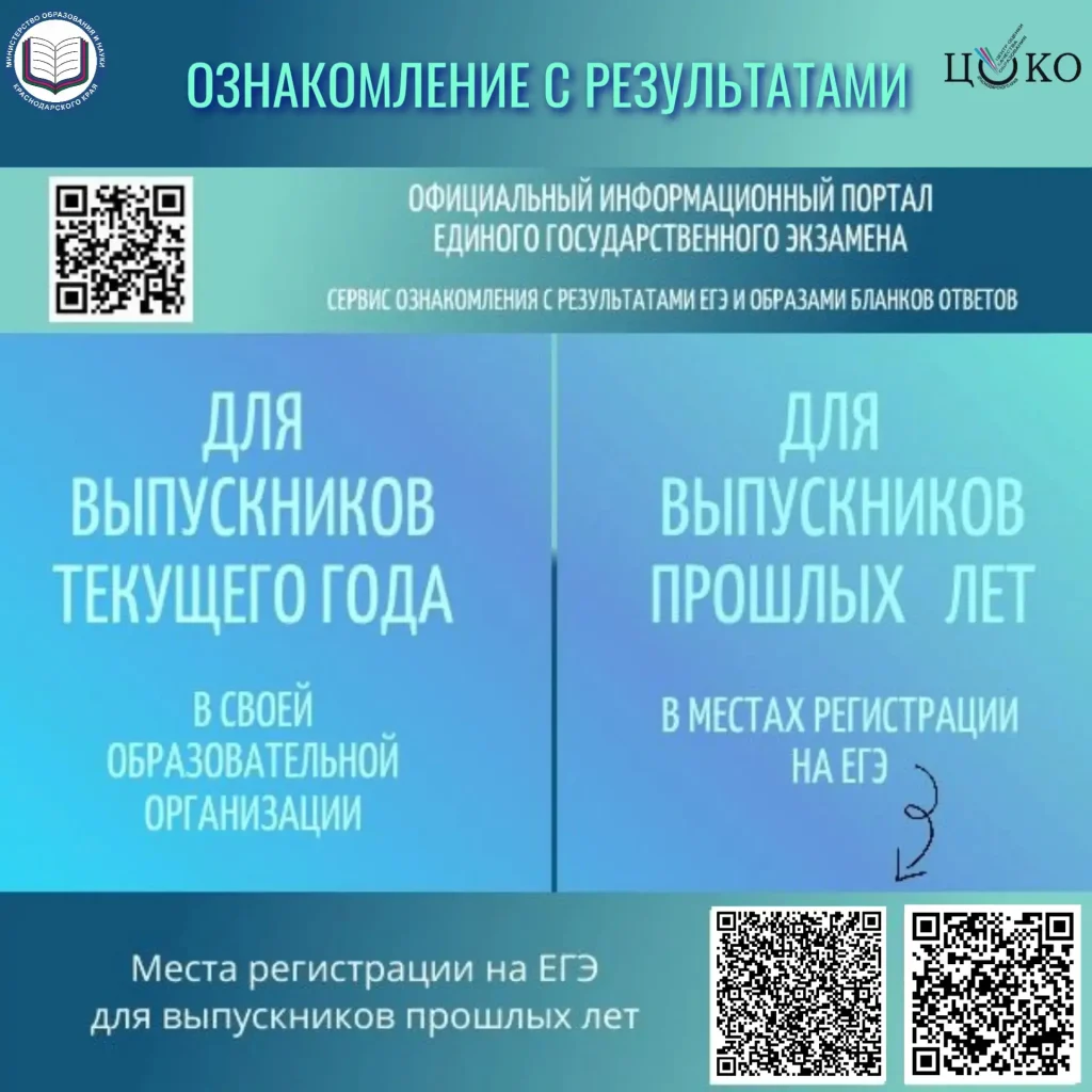 Напоминаем, что: выпускники текущего года смогут ознакомиться с результатами экзаменов под подпись в своей образовательной организации, в которую подавали заявление на участие в ЕГЭ; выпускники прошлых лет смогут ознакомиться с результатами в местах, в которых они были зарегистрированы на сдачу ЕГЭ.