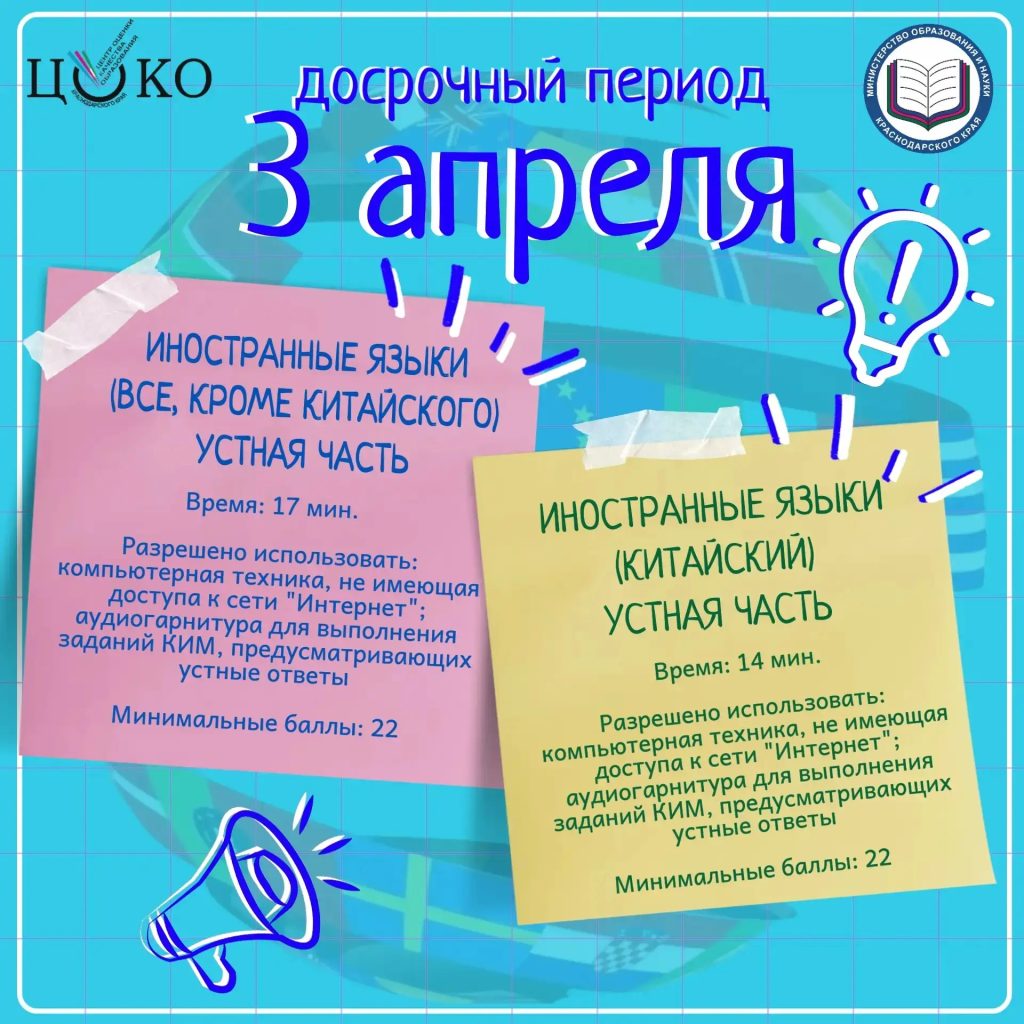 ⚡ Сегодня, 3 апреля, проводятся экзамены по иностранным языкам (устная часть).