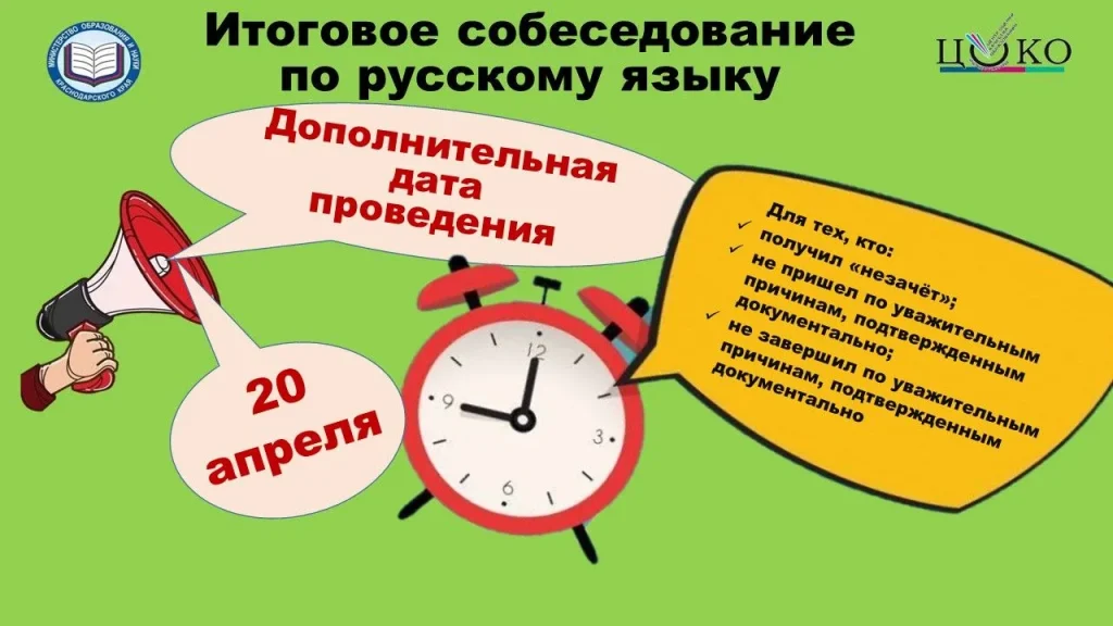 20 апреля – дополнительная дата проведения итогового собеседования по русскому языку.