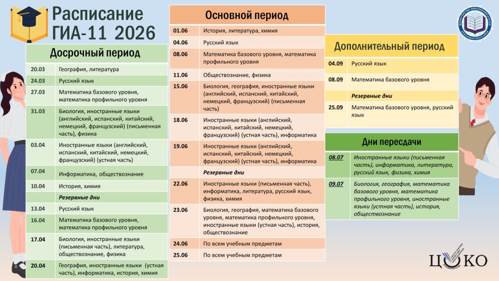 Расписания ГИА-11 (ЕГЭ и ГВЭ) в 2026 году